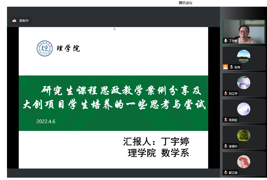 4月6日下午,必一·运动(b-sports)在“云端”开展了“花开有声”理学大讲堂第二讲,主讲人丁宇婷副教授,主持人崔金刚副院长,必一·运动(b-sports)党政领导班子成员及全体教职工在线聆听了讲座。