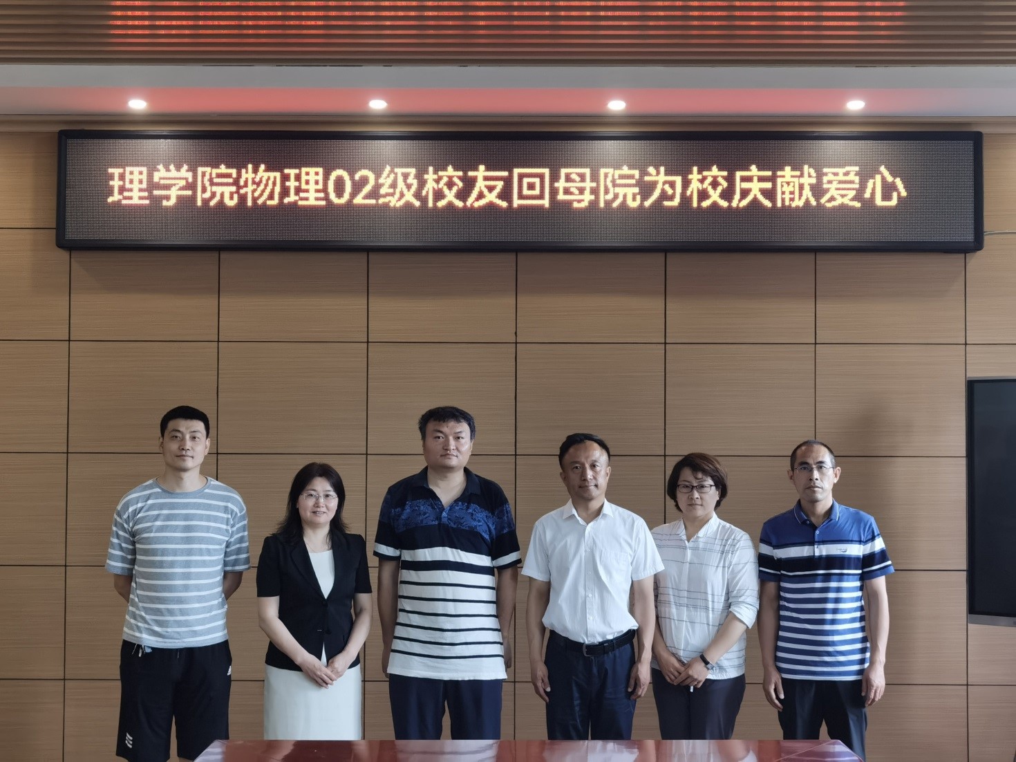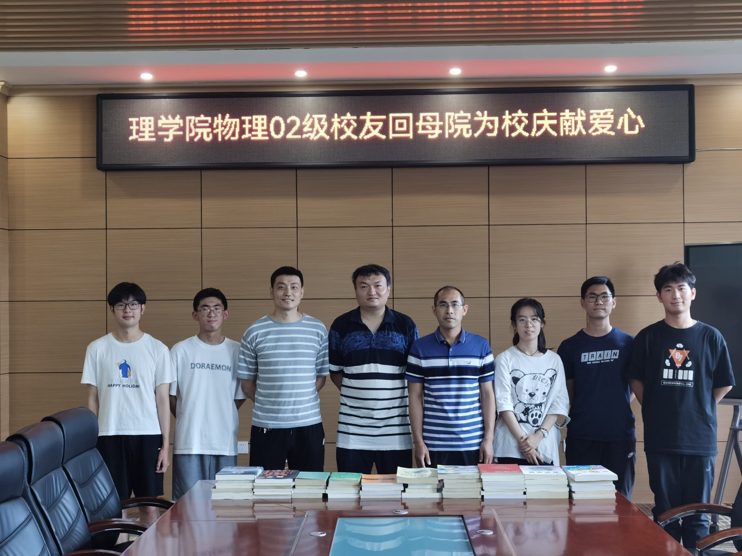 2022年6月24日上午,物理02级校友李鹏心系母院教育事业的发展,为了回馈母院,特意将自己多年来学习、工作所用书籍分类整理后捐赠给学院并向学院教育发展基金捐资献爱心,希望学弟、学妹们好好学习,将来做有用的人才,以更好的成绩回报母院。