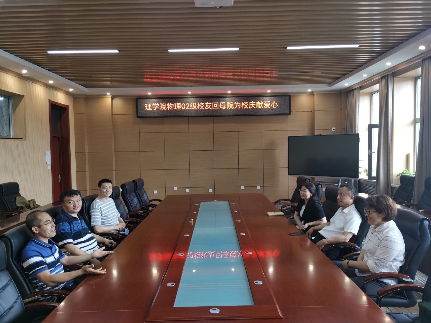 学院党政领导班子成员、院工会主席郑克礼、物理系系主任牟洪波教授及部分学生代表,在学院410会议室分别同李鹏校友开展座谈交流。李鹏校友汇报了他毕业后工作情况,表达了捐赠图书和爱心资助金的初衷。学院领导十分关注校友李鹏在校友群里表达的有关捐赠提议,第一时间安排学院办公室修老师和物理系主任牟洪波积极对接,积极协助他顺利达成愿望。安勇院长代表学院接受捐赠金,并对校友李鹏的爱心捐赠表示感谢,欢迎校友有时间常回学院看看,分享自己的经验,也感受一下学院的变化,共同见证东林和母院的发展。