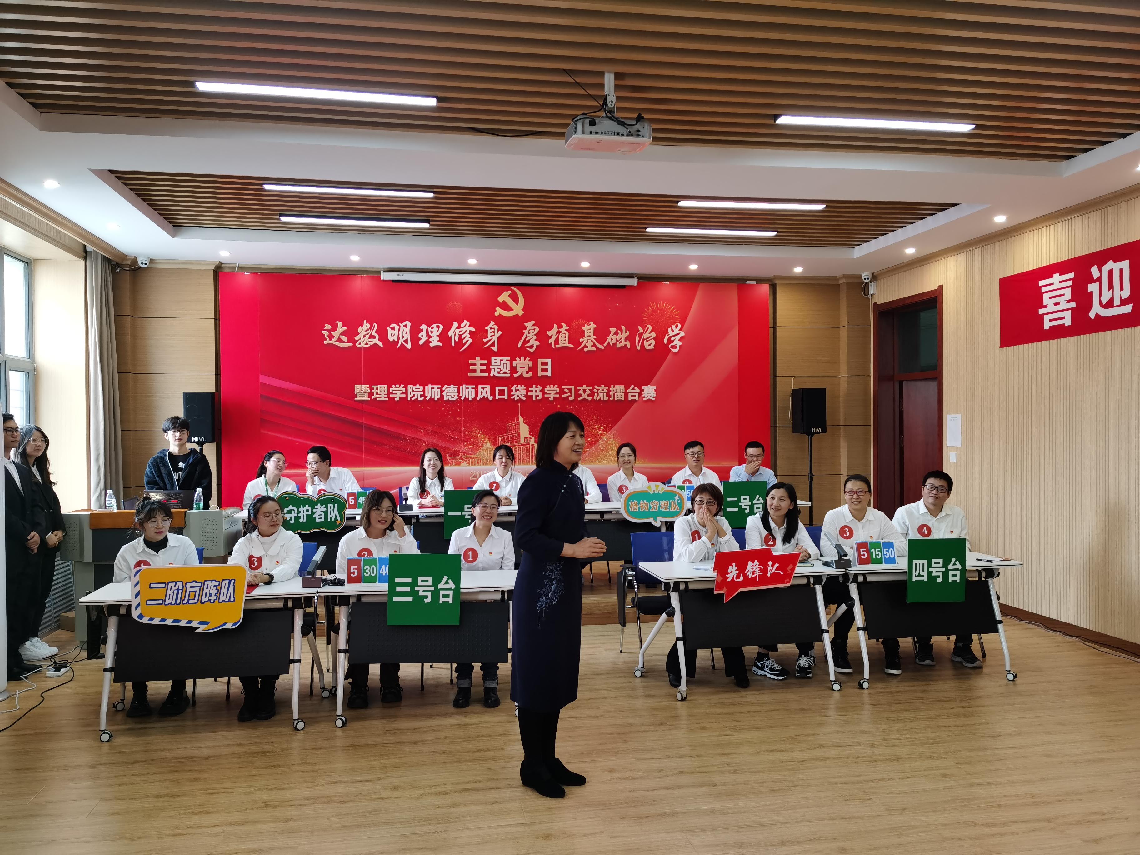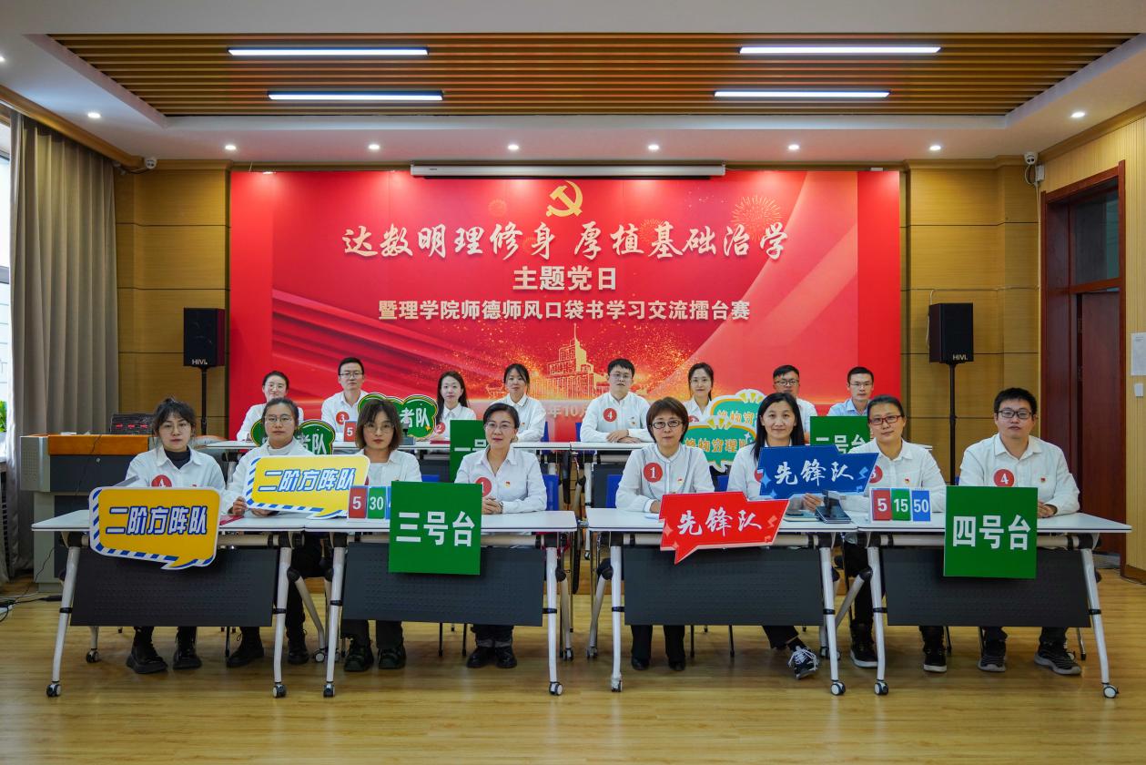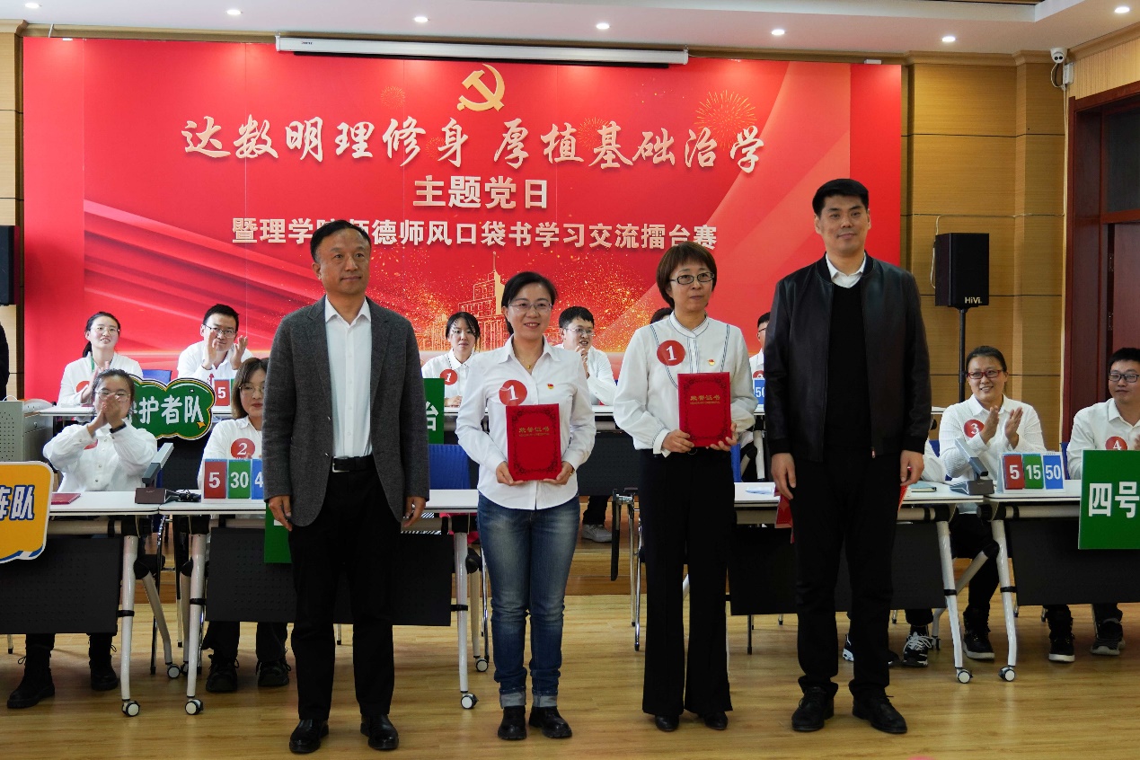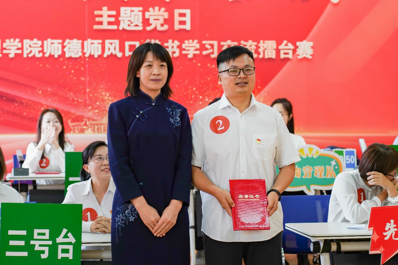 10月5日下午,在必一·运动(b-sports)407会议室举办了“达数明理修身厚植基础治学”主题党日暨必一·运动(b-sports)师德师风口袋书学习交流擂台赛。校党委常委、党委宣传部部长兼党委教师工作部部长李春英,人事处副处长兼人才交流中心主任姚远,教务处副处长赵璐璐,研究生院副院长王新政,党委学生工作部副部长兼副处长张磊出席观摩并为获奖集体和个人颁奖。学院团委书记王莹主持了比赛活动。