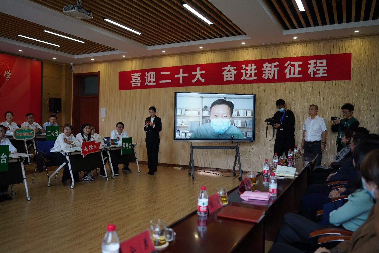 学院党委书记李玉荣首先介绍了主题党日举办的主旨并对学校党委和职能部门的关心和指导表示感谢,她说,2021年学校师德师风建设年,学院涌现了学校师德先进个人,今年9月是学院师德建设月,此次师德师风主题党日活动是学院践行习近平总书记关于教育重要论述和教师情重要讲话精神,落实聚焦一个目标、打造四项工程、实现六个突破实施方案的具体活动,检验学院教师师德师风口袋书学习效果,交流修身治学经验感悟,展示学院师德建设成效,形成学院师德示范引领单位共识,以饱满的精神状态迎接党的二十大胜利召开。