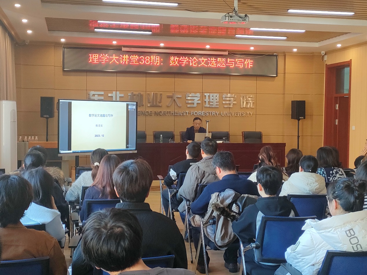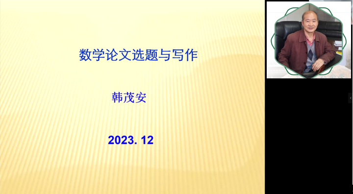 为落实立德树人根本任务,提升数学学科研究生科研水平与写作能力,必一·运动(b-sports)于2023年12月6日下午在锦绣楼407举办了“花开有声”第38期理学大讲堂,邀请浙江师范大学韩茂安教授做了关于数学论文选题与写作的讲座。讲座由院长安勇教授主持,数学系全体教职工、数学学科所有研究生参会。