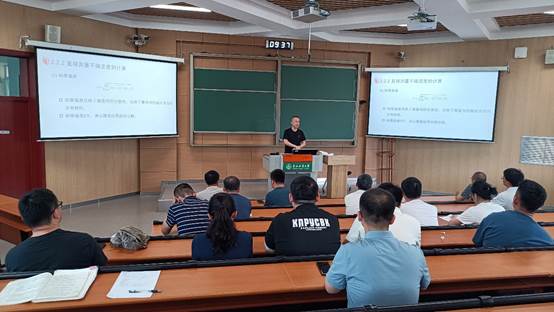 会议第一项内容为系主任兼专业负责人田赫示范教学。他分别从课程学习的重点与程序、数据处理及误差分析理论、有效数字的处理、实验曲线的描绘与拟合四个部分进行了详细地讲解示范。涵盖了重点内容的梳理、讲解时间分配、学生基础现状等重要方面。