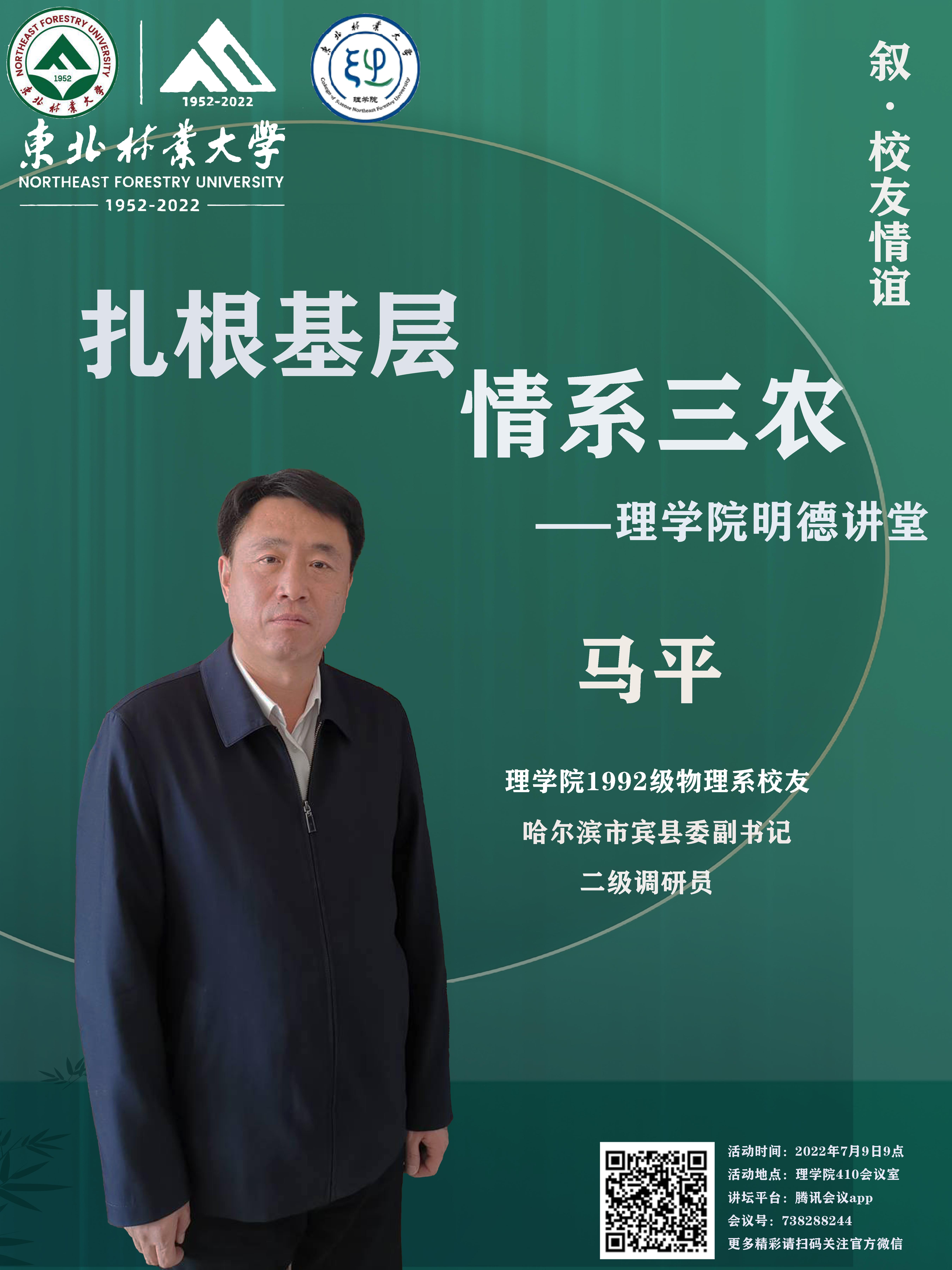 届时,马平校友将结合他的亲身经历开展本次讲座,其扎根基层、服务三农的收获与情怀,共祝东林七十周年华诞!