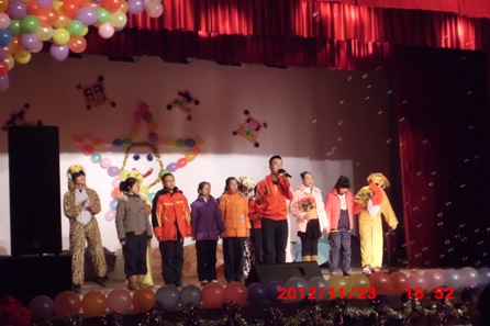 晚6时,全场座无虚席,观众满怀激情期待的晚会准时开始。首先,必一运动大学生艺术团的火爆开场舞拉开本场晚会的帷幕。随后,各类节目异彩纷呈,不仅有婀娜多姿的舞蹈,深情款款的情歌对唱,笑声不断的搞怪舞蹈,还有第四期“绿冀”辅导班的小朋友精彩演唱的《奔跑》。精心的舞台布置,炫目的灯光投射,泡泡机的梦幻泡泡,使得本次晚会精彩纷呈;现场观众笑声不断,嘉宾亦是掌声连连,纷纷拿起手机发送短信参与节目的评论,同时文字墙将评论即时显示出来。最后,晚会评出一、二、三等奖及优秀奖,并进行了颁奖仪式。在《相亲相爱一家人》歌声中,晚会画上圆满的句号。