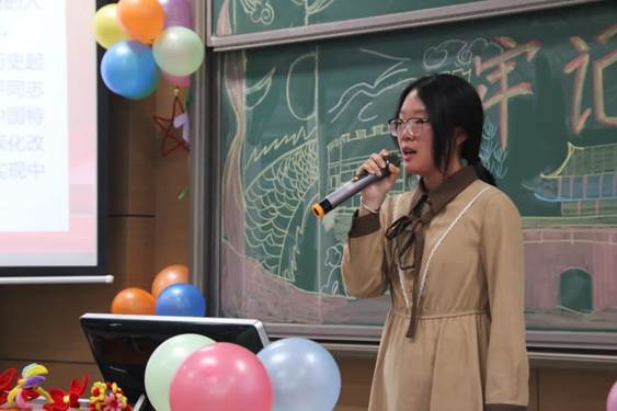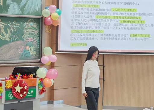 张飘絮同学带领同学们回顾了新中国成立75年来的风雨历程和辉煌成就,让同学们深刻感受到祖国的沧桑变化和日益强大,心中的民族自豪感油然而生。