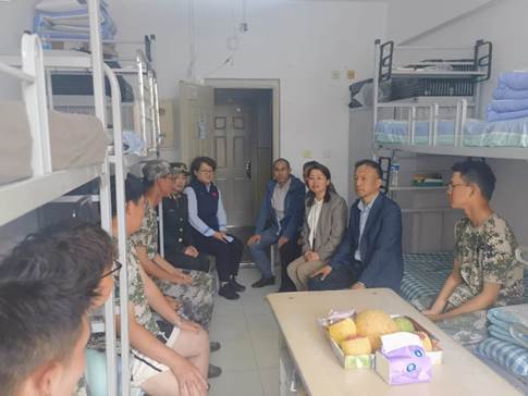 一句句关怀的话语,一声声节日的问候,师生的欢声笑语充满了宿舍,拉进了师生之间的距离,领导老师们暖心地叮咛为同学们带来了家的温暖,新生们纷纷表示,从报到进校就感受到学校的热情和无微不至的关怀,学院领导老师的到来更是让初入大学的新生们倍受鼓舞、倍感温暖,今后一定勤奋刻苦学习,锤炼过硬本领,为祖国发展贡献青春力量!