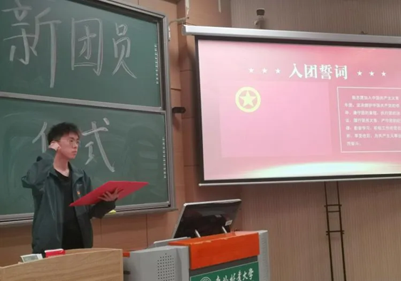 随后,2023级物理学2班李绍云作为新团员代表带领大家一同高举右拳,面向团旗庄严宣誓,誓言铮铮,铿锵有力,大家坚定对共青团的忠诚和热爱,明确身为共青团员的责任和使命。