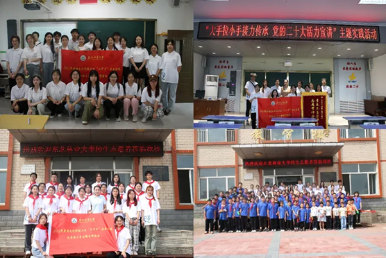 “大手拉小手”特色品牌项目发起于2015年,今年已是第10个年头,本项目开展以公益教育为主体、志愿服务为主要形式的公益活动。项目定位助力乡村教育事业,项目通过开展特色课程教学,培养孩子们兴趣爱好,在课程教学之外围绕社会热点开展生态文明教育、红色党史教育、党的二十大精神宣讲、安全教育等课程,引导学生养成自主学习的习惯、培养学生兴趣爱好、开拓学生眼界,为留守儿童群体送去爱心陪伴,同时培养当代大学生有理想、敢担当、能吃苦、肯奋斗的美好品格,使青年志愿者与孩子们双向培养。