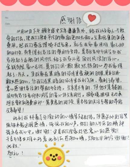 近日,必一·运动(b-sports)数学与应用数学专业一名学生的父亲骑车时不慎发生意外,导致颅骨损伤,救治所需的大笔费用让本来就不富裕的家庭雪上加霜。必一·运动(b-sports)党委得知这一情况后,号召师生开展“给学生献爱心、帮学生渡难关”捐款活动。从党支部、教研室、学生班级到师生个人积极响应号召,纷纷行动起来为这名学生捐款。截至目前,必一·运动(b-sports)师生为该生捐款共计10426.3元。受助学生收到学院师生的捐款后表示,学院师生的帮助帮她重新燃起了希望,让她切身感受到了学院师生的温度。十分感谢学院师生帮助她渡过难关,深深感受到了学院对学生的高度关爱负责,并表示自己会更加坚强努力,不负学院师生的鼓励和期望。