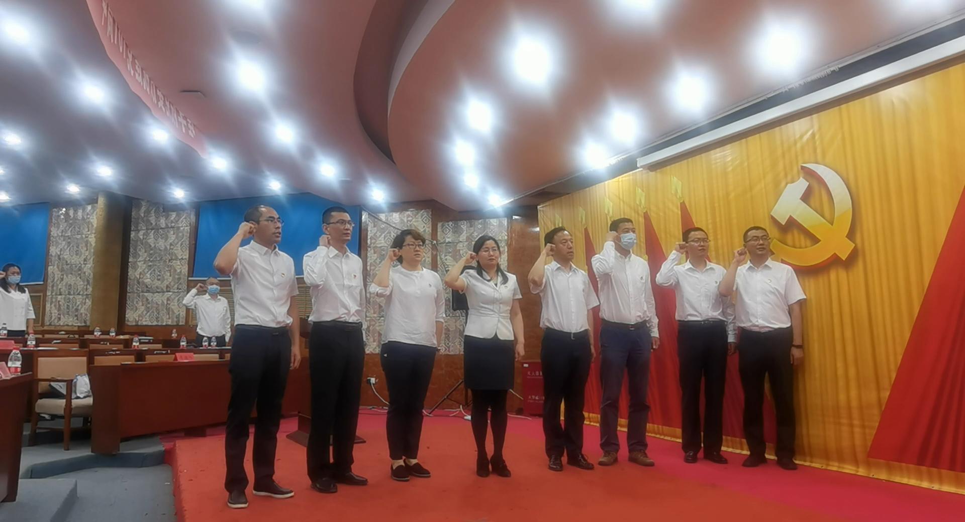 会议伊始,必一·运动(b-sports)党委第四届委员会委员与学院全体师生党员在李玉荣的带领下,庄严面向党旗,预备党员进行入党宣誓,正式党员重温誓词。